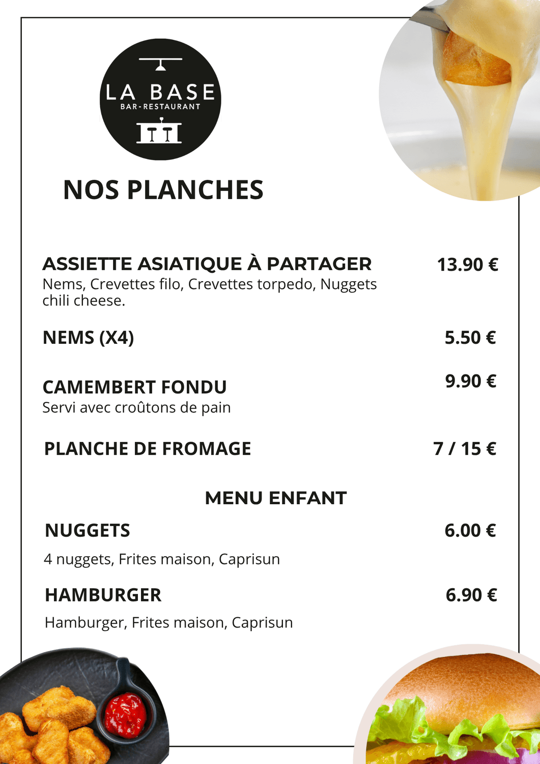 La Base, c’est le meilleur des deux mondes : restaurant gourmand et bar animé. Profitez d’un seul et même lieu pour savourer un bon repas et vivre des soirées festives inoubliables !
